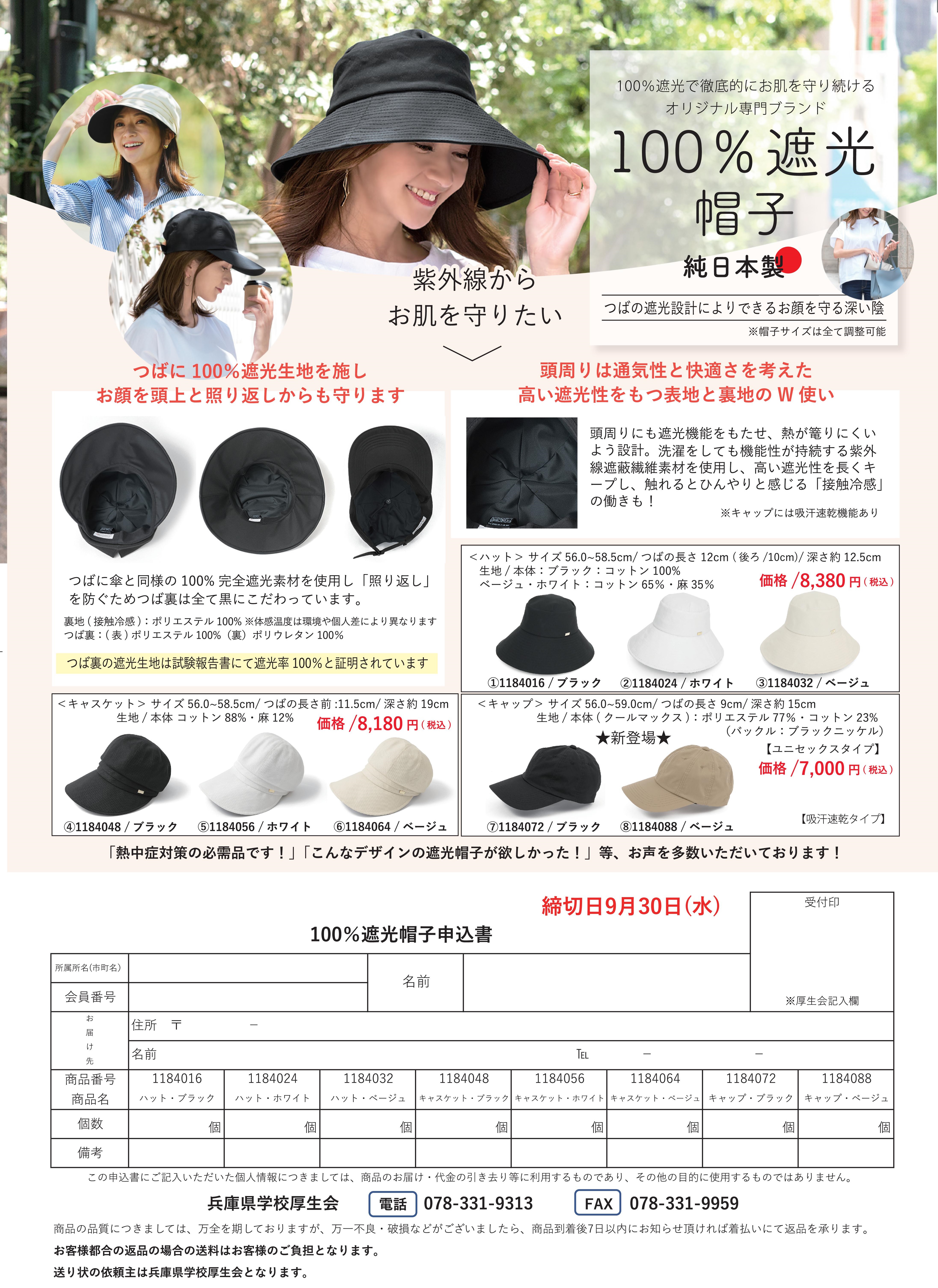 ~純日本製~100%遮光帽子~お顔を頭上と照り返しからも守ります!